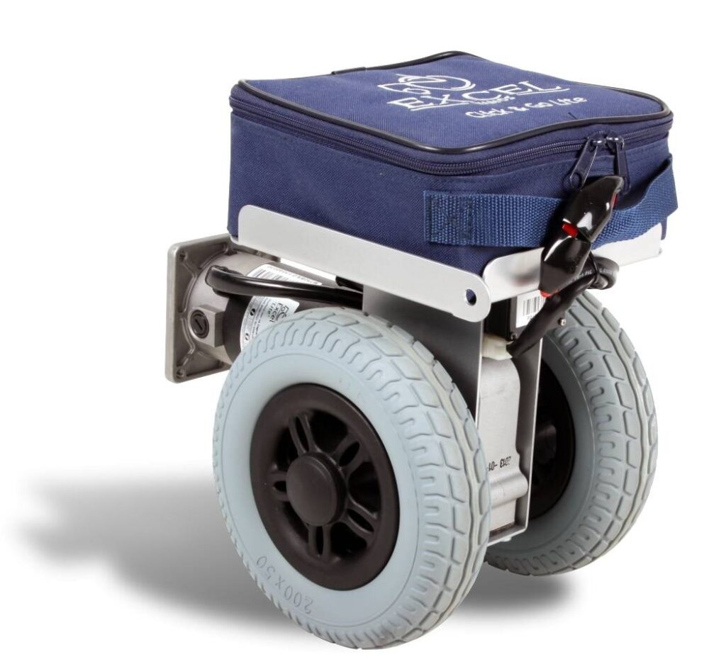 Geen nood, de aandrijving is gemakkelijk afneembaar of los van de grond te plaatsen. Deze compacte duwhulp is standaard voorzien van 2 wielen die de aandrijving verzorgen.