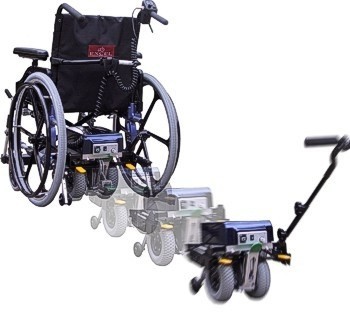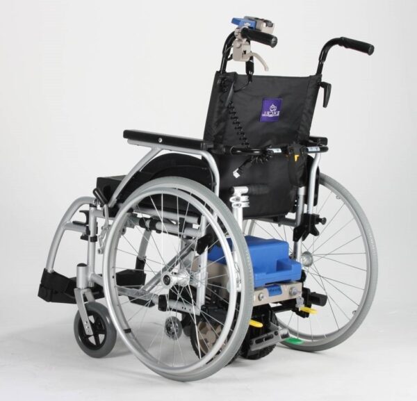 Deze compacte duwhulp is standaard voorzien van 2 wielen die de aandrijving verzorgen.