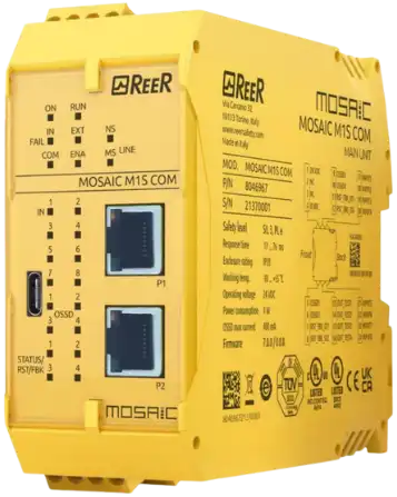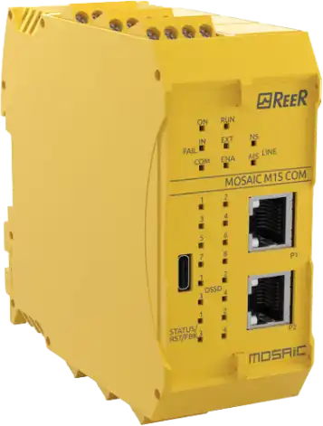 De ReeR Mosaic-serie is een modulair en flexibel veiligheids-PLC-systeem ontworpen voor industriële automatiseringstoepassingen. Het systeem biedt een breed scala aan veiligheidsfuncties, eenvoudige configuratie met de gratis Mosaic software en ondersteuning voor diverse communicatieprotocollen. De Mosaic-serie voldoet aan internationale veiligheidsnormen zoals ISO 13849-1 en IEC 62061, wat betrouwbaarheid en veiligheid garandeert in veiligheidskritische situaties.